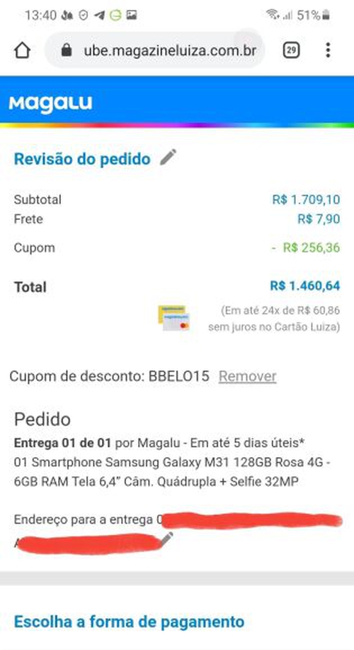 não consegui chegar em 1460, apenas 1530, esse valor é penas para cartão Luiza?