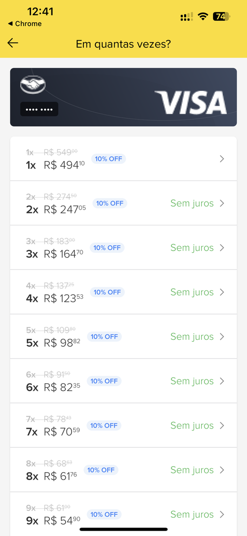 Corrigir, Valor diferente do anúncio, tá saindo por 539 na loja viking e cartão mercado pago
