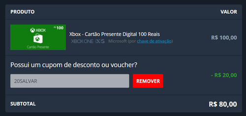 Cartão Presente Digital Xbox de R$100 por apenas R$80 com CUPOM