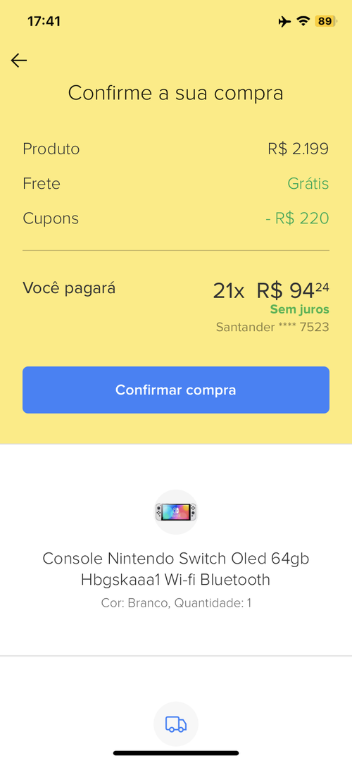 [Cartão Santander] Nintendo Switch OLED - 21x sem juros