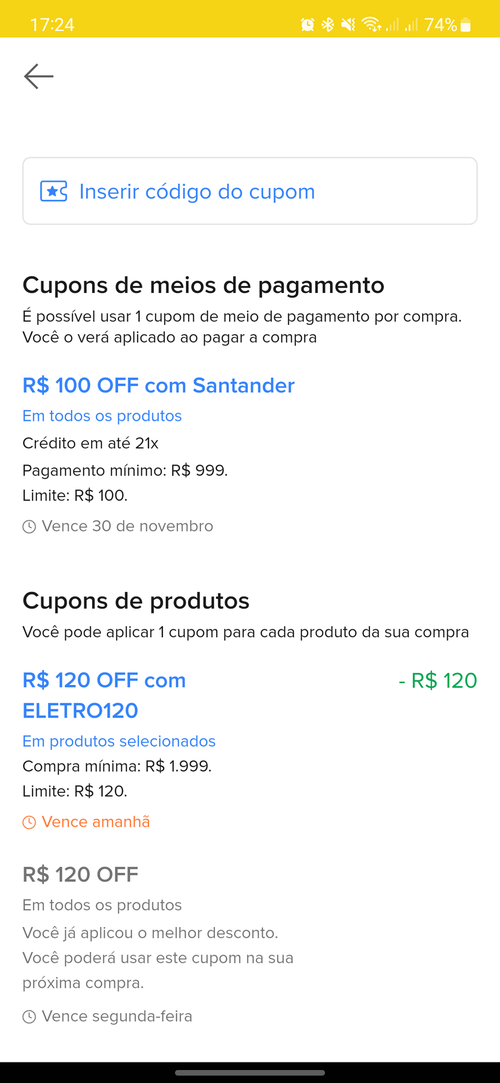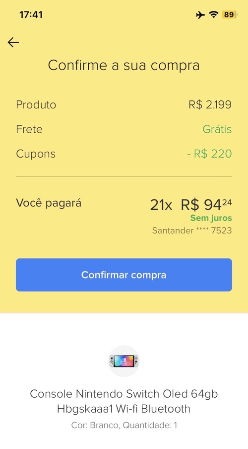 Não fica pelo valor aqui pra mim. Tou com cupom de 120 e tentando pagar no cartão Santander