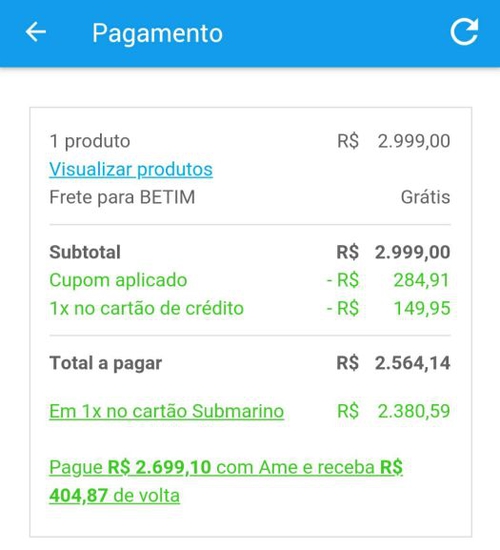 Paguei 2699 com o cupom e pelo ame recebi 404,87 de crédito então paguei 2294,23 em 12x... Achei um bom negócio.