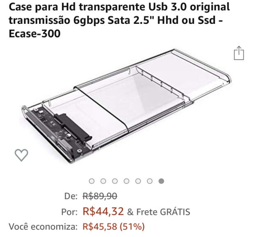 Case para Hd transparente Usb 3.0 original transmissão 6gbps Sata 2.5" Hhd ou Ssd - Ecase-300 [FRETE GRÁTIS]