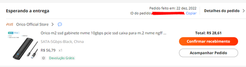 comprei há alguns dias atrás por 61 o modelo que tem os dois padrões para SSD SATA ou NVME, recebi ontem. Um pouco decepcionado porque as fotos enganam: não é todo em alumínio, a parte principal do case é de plástico, só a capa deslizante é em alumínio. Toda área em volta onde tem o LED é de plástico e acende tudo junto, não só o led redondinho da foto. Vem com um dissipador de metal e fita térmica, e dois plugs de borracha para fixar o SSD, sem precisar parafuso. Bem acabado, sem rebarbas, cabinho de dados é curto com 32cm. Velocidades dentro do esperado, estou usando com um SSD SATA.