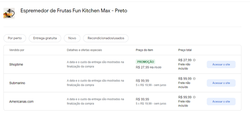 [Cashback com CC AME = R$14] Espremedor de Frutas Max Preto Fun Kitchen 220V