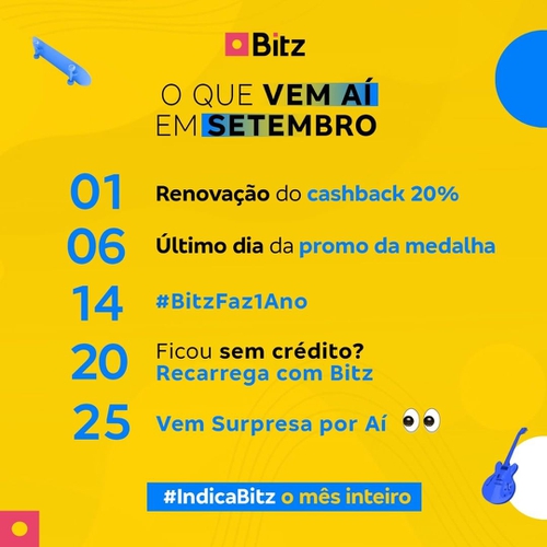 Ganhe 20% de Cashback no Bitz em SETEMBRO/2021!