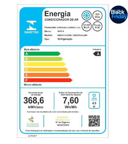 [Cashback Web R$ 1.702] Ar Condicionado Split Inverter Midea AI Ecomaster 12000 BTUs Frio 220V 38EZVCA12M5