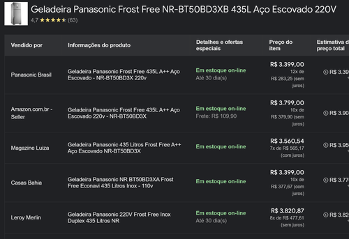 [Cashback Webcontinental R$ 2646] Refrigerador Panasonic BT50 Top Freezer 2 Porta Frost Free 435L Aço Escovado 127V NR-BT50BD3XA