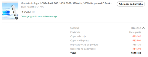[CC MASTERCARD R$151,3] Memória Asgard, 16GB (1x16gb) 3200MHz Desktop