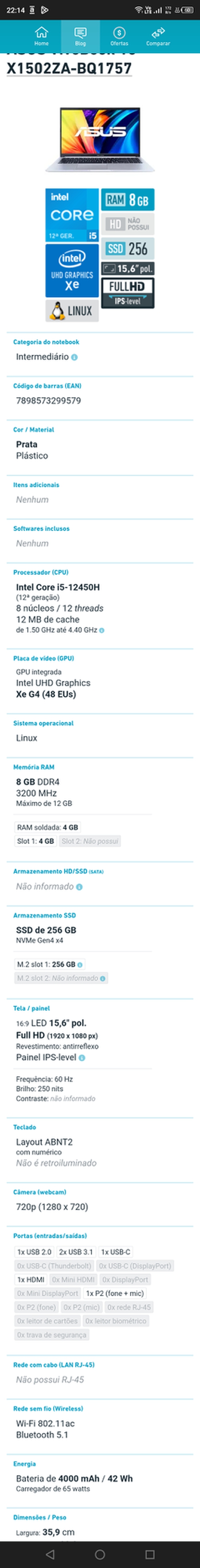 Comprei um Vivobook desse com i5 12450h porém com 4gb por 1750 no Magalu mês passado, com 4gb é meio sofrido mas botei mais 8gb por 100 conto, dessa forma ficou excelente e o preço ficou bem legal comparado com os outros modelos que estavam disponíveis, preço deu uma subida no momento mas comentando já que foi uma compra recente e as vezes o preço cai de novo