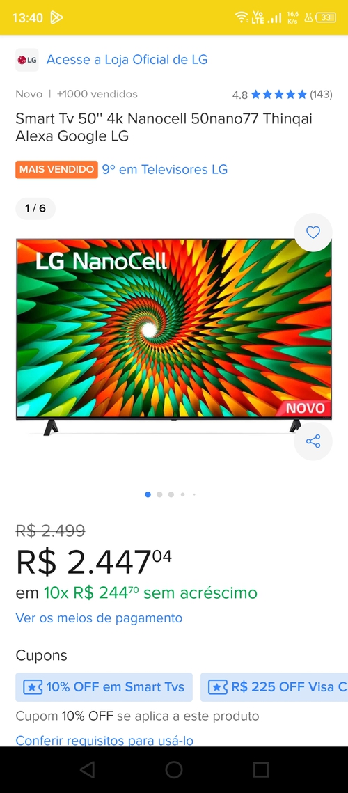 Selecionar o vendedor oficial da Loja LG.
