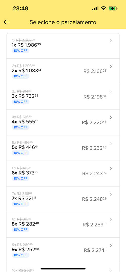 Só com 10% do cartão fica 2000