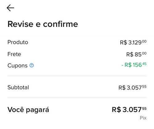 E tinha mais um cupom de 120 que não consigo lembrar o nome, já tava no carrinho :(, tem algum lugar que eu consiga ver o nome do cupom pra ajudar vcs?