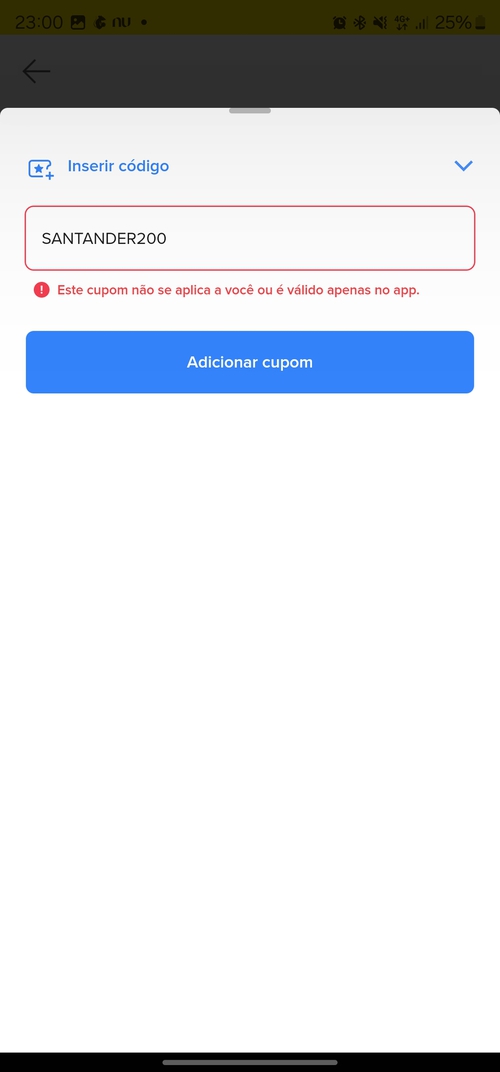 Cupom de 200 não tá entrando nem com o cartão santander.