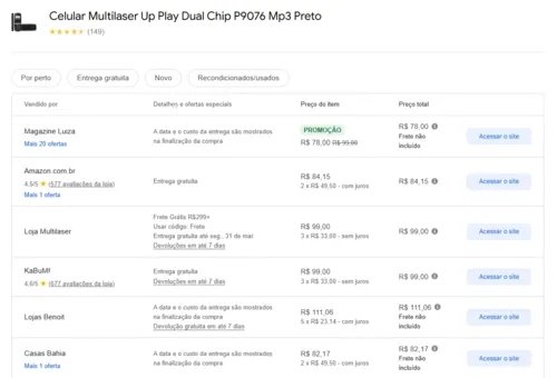 - Preço mais baixo conforme Google Shopping