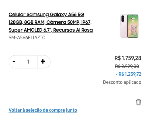 Pq na tela "adicione junto" aparece o galaxy fit 3 com valor de 99 e no carrinho aparece com valor de 460?