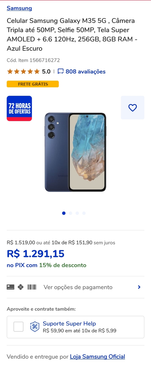 Celular Samsung Galaxy M35 5G , Câmera Tripla até 50MP, Selfie 50MP, Tela Super AMOLED + 6.6 120Hz, 256GB, 8GB RAM - Azul Escuro