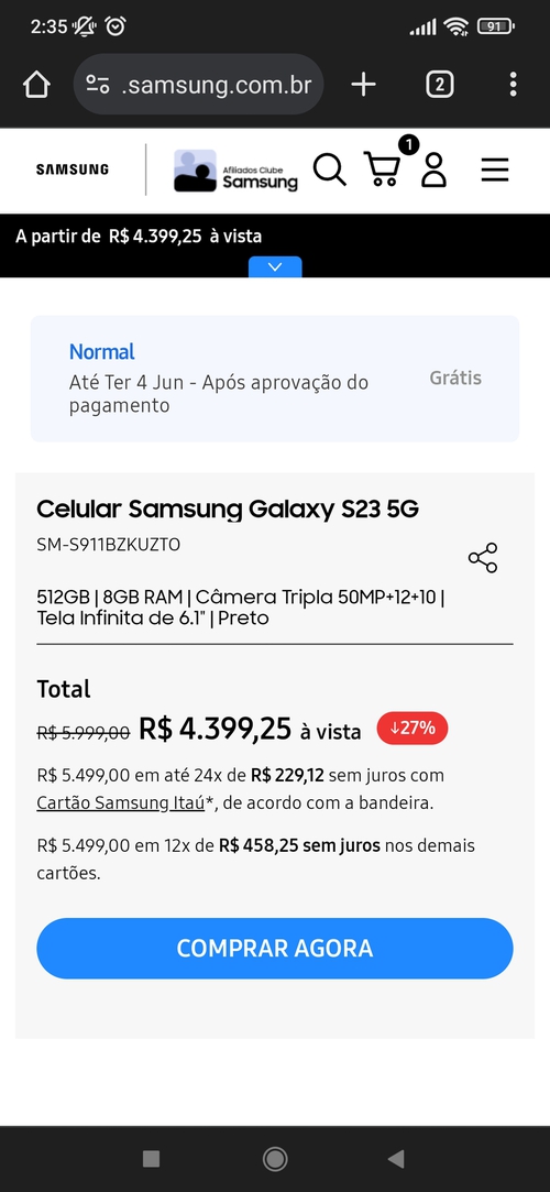 As outras opções de s23 estão esgotadas no site. Será que essa de 512 vai acabar também?