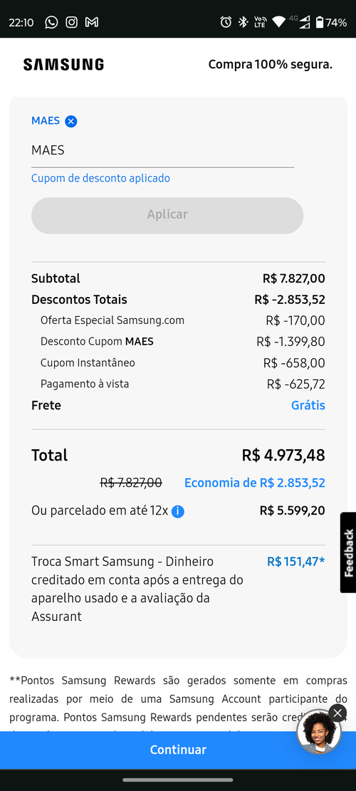 Pessoal sabe se tem algum problema de colocar o troca smart e não mandar o celular? Tipo sei que não vou receber o valor posterior que aparece na mensagem abaixo do valor, mas queria saber se dá algum problema com a compra da Samsung?