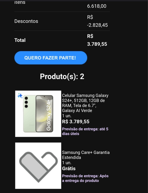 Aqui não vai. Ele dá o desconto do troca smart certinho na primeira página, mas a hora que avança a compra para escolhes buds ou fit, o desconto some. Ainda dá uma msg de "O valor foi alterado". Tentei outras cores também e nada.