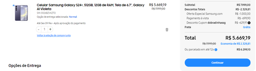 Celular Samsung Galaxy S24+, 512GB, 12GB de RAM, Tela de 6.7", Galaxy AI Violeta