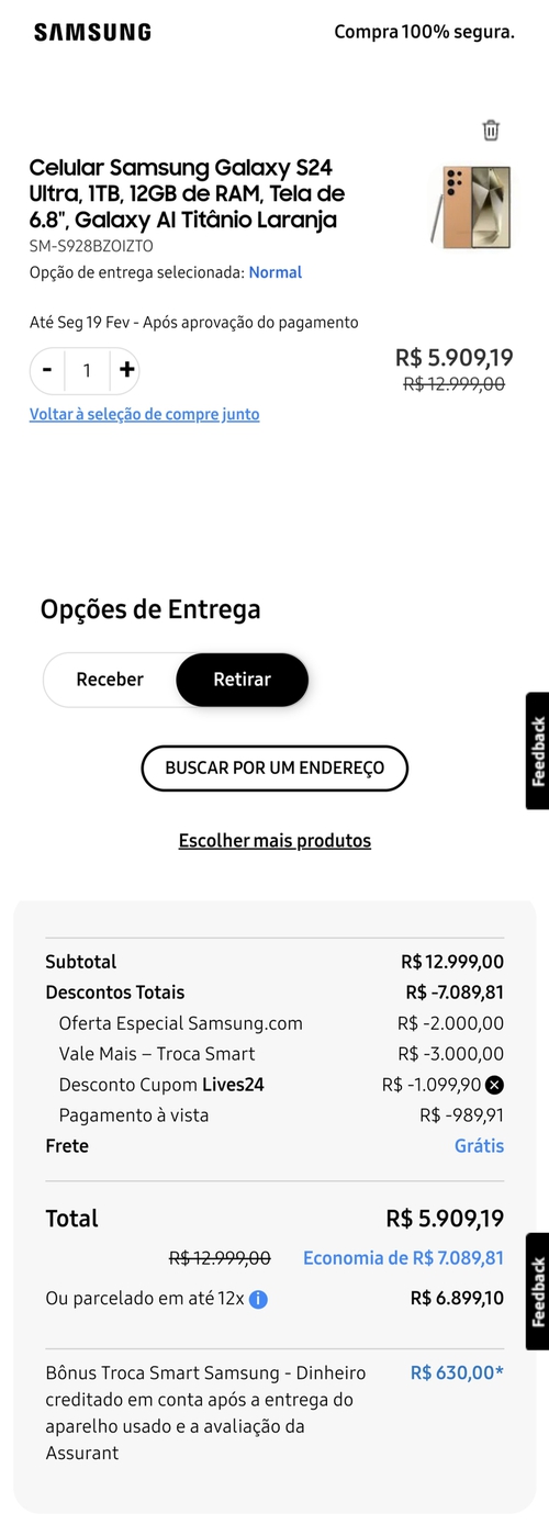 Versão de 1tb saindo por R$5.909 no pix. O bônus do trocasmart para a versão de 1tb está maior que para as outras.