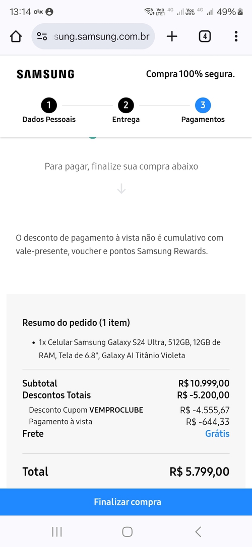 Incrível como nunca consigo esses valores anunciados. Sempre dá a mais mesmo seguindo a risca quando é na loja da Samsung.
