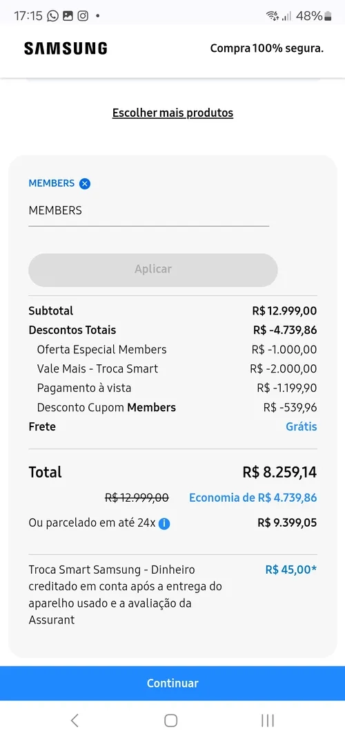 O Members está dando o desconto adicional direto no carrinho (troca smart 2 mil), mas no members o desconto de pré-registro aparentemente não é aplicável