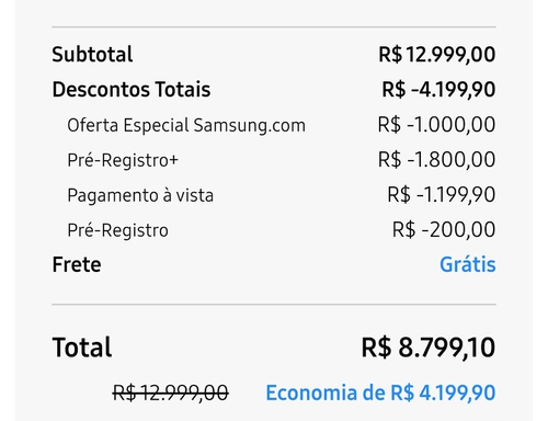 Valor no Samsung Members, o mesmo valor com o tal pré registro.