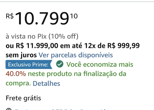 Valor do celular no carrinho é 11999