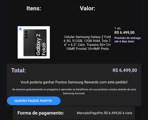 Acabei de fazer a compra, deu certo pagei 6.499.00 em 12 vezes mercado pago. Na onde que aparece o cashbak