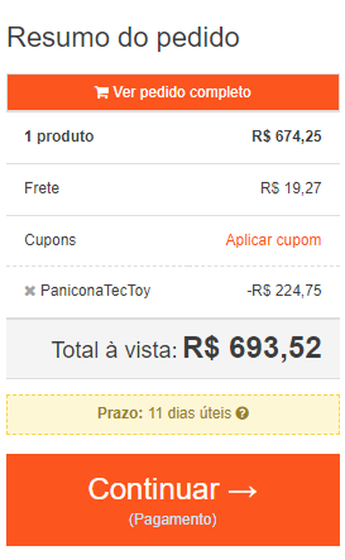 AQUI SAIU 674,25 + 19,27 DE FRETE VIA SEDEX