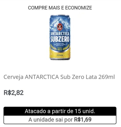 Cerveja ANTARCTICA Sub Zero Lata 269ml (a partir de 15 unid) | R$1,69