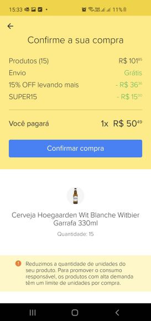 Pessoal só vai dar pra comprar 15 tem que adicionar 36 para entrar o desconto.