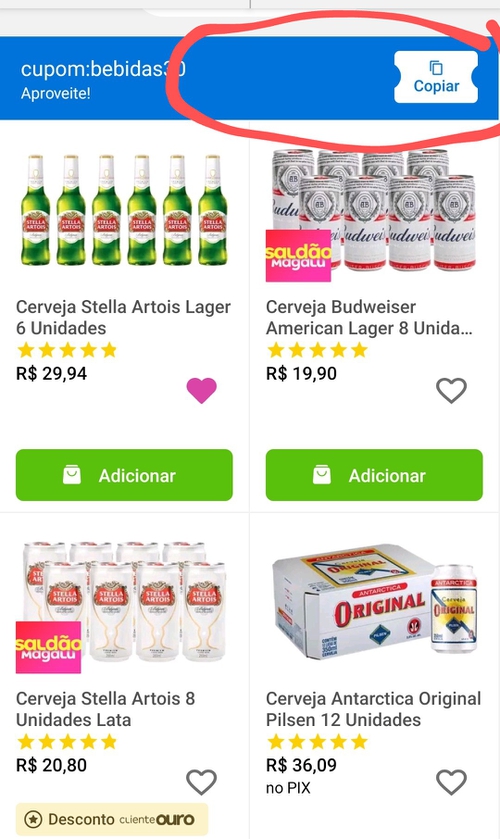 Meu também deu inválido, vão no APP página inicial da magalu e entrem nos cupons disponíveis, copiem o que estiver lá de bebidas (BEBIDAS30), parece que digitando não vai, copiando de lá da certo.