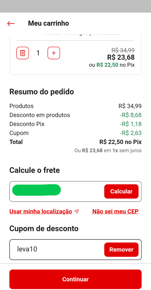 R$22,50 no Pix + cupom.