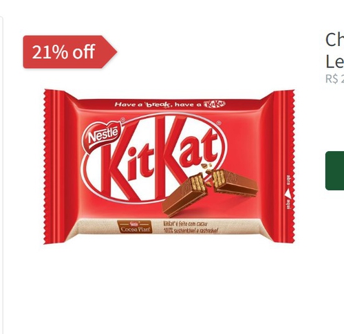 Chocolate Kit Kat 4 Fingers ao Leite 41,5g por R$2,29