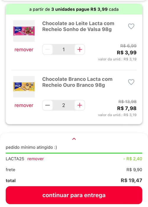 Por mais que o banner diga 3,19 a unidade, ao adicionar 3 unidades no carrinho, aplicar o cupom e marcar para retirar na loja, a unidade sai por 2,99