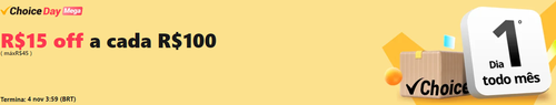 Choice Day Aliexpress - R$15 OFF a cada R$100, limitado a R$45