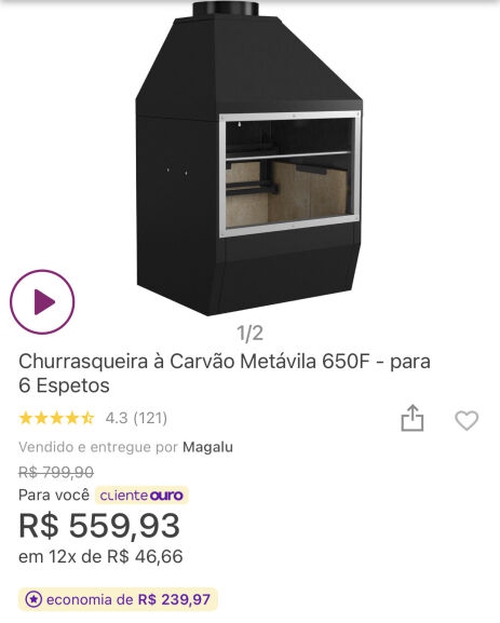 Churrasqueira Metavila 650F | R$559