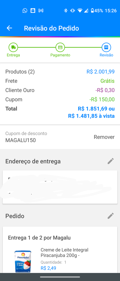 tem que adicionar 1 creme de leite para aplicar o cupom