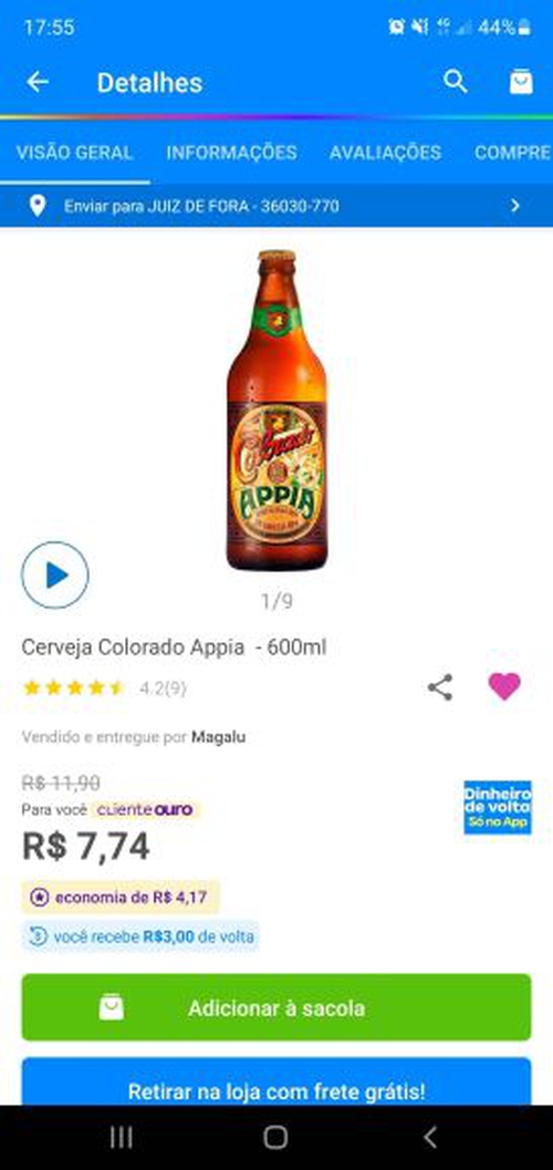 Cliente Ouro com Cashback sai 4,74. No app Magalu comprando 7 o frete é grátis.