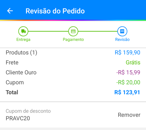 Pagamento pelo APP+Cliente Ouro+ Cupom