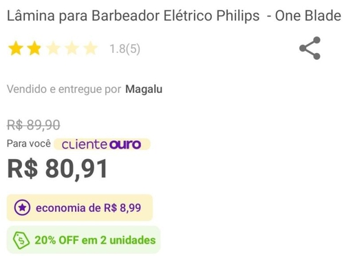 [Cliente Ouro] Lâmina One Blade para Barbeador Elétrico Philips | R$57