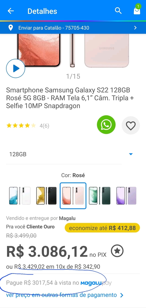 Valor de R$ 3017,54 na cor Rose sendo Cliente outro e pagamento via Magali pay.
