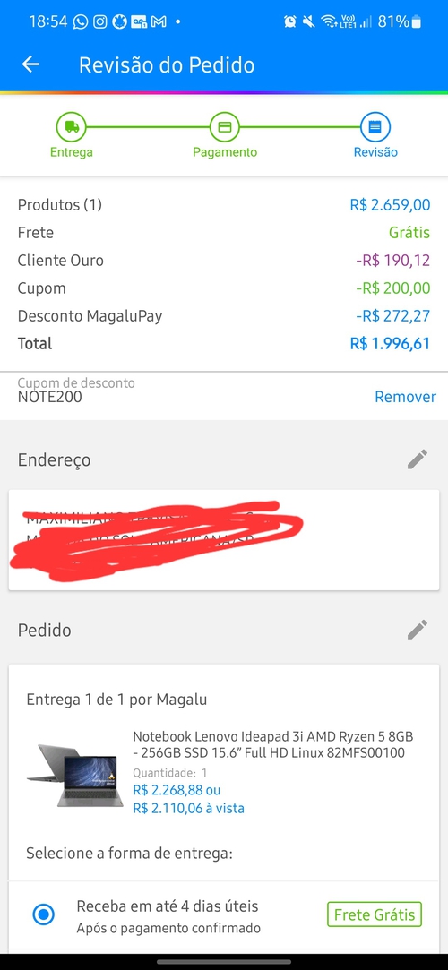 Vendido por Magalu