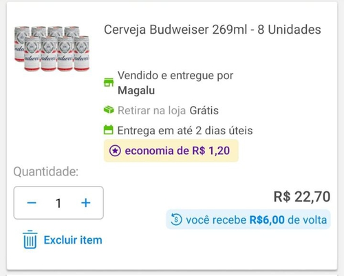 O preço final conta com os R$ 6,00 de CashBack no MagaluPay (22,70 - 6,00 = 16,70).