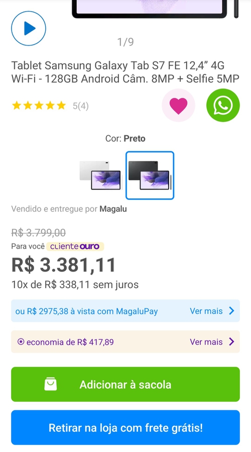 Pagar com MagaluPay (talvez seja necessário ser Cliente Ouro).