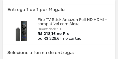 [Cliente Ouro R$ 218] Fire TV Stick Amazon Full HD HDMI