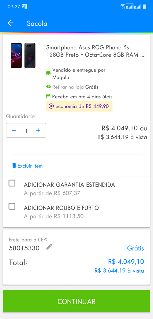 5- Pronto, vai aparecer o celular por 4064, ai adiciona no carrinho pra ficar 3600